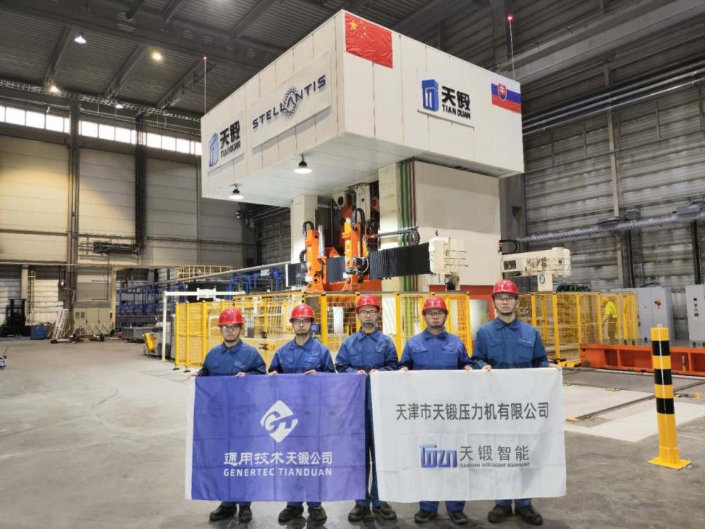 近日,天鍛公司為全球第四大汽車制造商Stellantis集團(tuán)提供的首條12000kN復(fù)合驅(qū)動熱成形壓力機(jī)自動化生產(chǎn)線在用戶斯洛伐克工廠成功完成安裝調(diào)試,實現(xiàn)首件生產(chǎn)。這標(biāo)志著該產(chǎn)線已具備生產(chǎn)能力,為客戶下一步批量生產(chǎn)奠定基礎(chǔ)。
