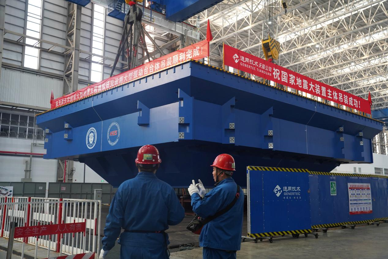 1月13日,天津大學(xué)地震大裝置大型振動(dòng)臺(tái)臺(tái)體順利吊裝成功。公司領(lǐng)導(dǎo)劉林志、張敬波、劉玉民,首席專家馮永平帶隊(duì)赴項(xiàng)目現(xiàn)場(chǎng)指導(dǎo)工作。