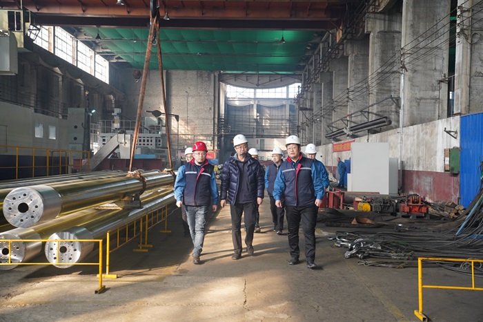 賀鑫元一行深入機加工車間和動力車間,現(xiàn)場調(diào)研公司技改完成情況,了解各類設(shè)備運行情況并提出指導建議。座談會上,賀鑫元一行聽取了公司第一季度“開門紅”工作情況報告,圍繞市場開拓、科技創(chuàng)新、技改投入、板塊協(xié)同、安全生產(chǎn)等工作開展進行了溝通交流。