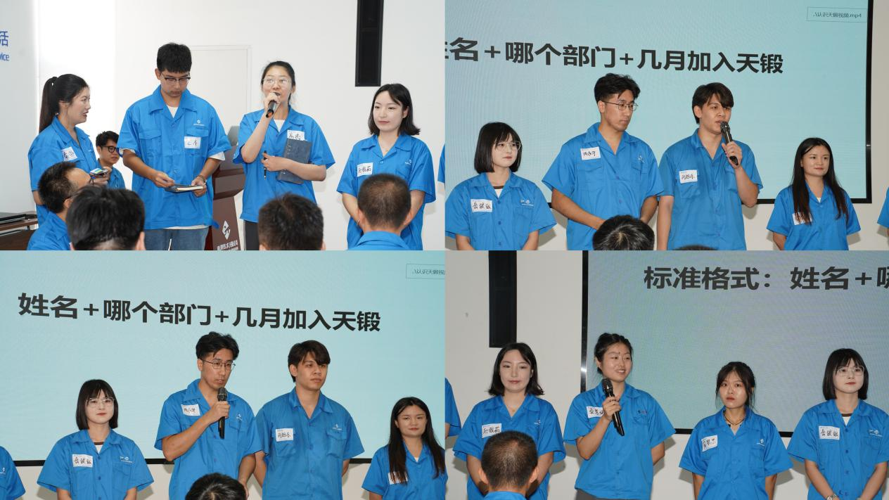 新員工入職儀式以“來天鍛,我們一起干,前程無限”為主題,通過觀看公司宣傳片、新老員工自我介紹和隨機問答、互動交流等方式,幫助新員工了解公司基本情況、認識新老同事,增進同事間的交流與融合。