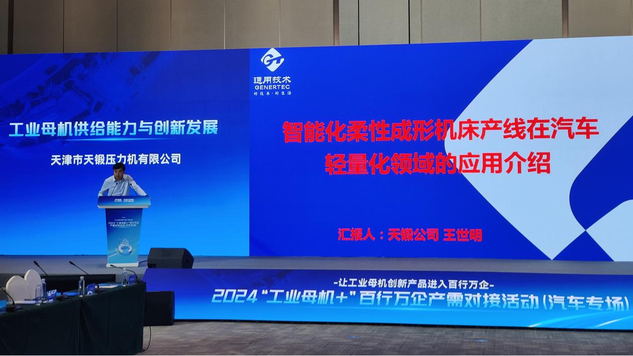 活動期間,公司參展人員向與會嘉賓介紹公司服務(wù)汽車產(chǎn)業(yè)的有關(guān)技術(shù)和產(chǎn)品,展示公司綜合能力和在國內(nèi)外汽車制造領(lǐng)域的業(yè)績。副總經(jīng)理王世明在“工業(yè)母機+”百行萬企產(chǎn)需對接(汽車專場)活動上作《智能化柔性成形機床產(chǎn)線在汽車輕量化領(lǐng)域的應(yīng)用介紹》專題報告,介紹公司在汽車輕量化領(lǐng)域技術(shù)創(chuàng)新與產(chǎn)品應(yīng)用情況。