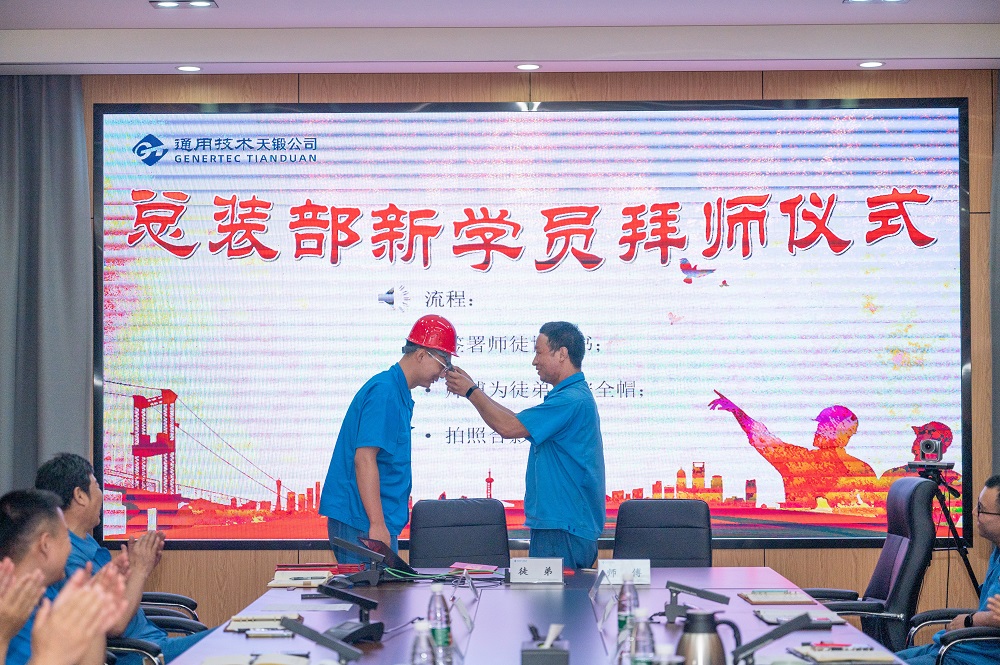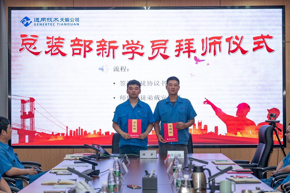 支部舉行了新員工“拜師”儀式。新學員與導師在《師徒協(xié)議書》上鄭重簽字,徒弟向師傅鞠躬施禮,師傅為徒弟佩戴安全帽并贈言勉勵。