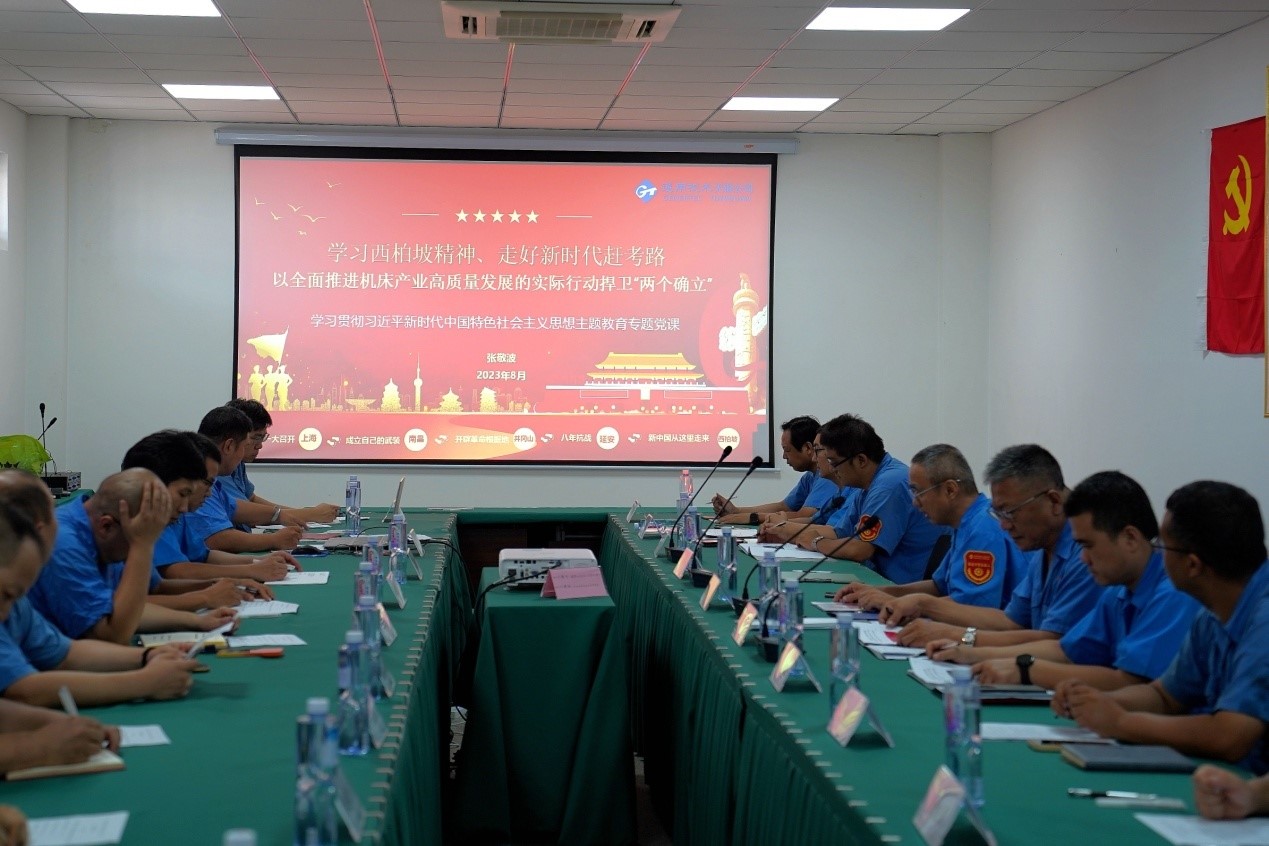 公司副總經(jīng)理、黨委委員張敬波傳達學(xué)習(xí)了機床公司黨委書記、董事長唐毅主題教育專題黨課的主要內(nèi)容。他從公司實際出發(fā),系統(tǒng)解讀了習(xí)近平新時代中國特色社會主義思想的科學(xué)內(nèi)涵,分析了當(dāng)前機床板塊面臨的形勢與發(fā)展任務(wù)。強調(diào)全體員工一定要在實際工作中把“西柏坡精神”發(fā)揚光大,充分“挖掘”和發(fā)揮數(shù)控機床的潛力,以全新姿態(tài)做好世界一流專業(yè)領(lǐng)軍示范企業(yè)的創(chuàng)建工作。